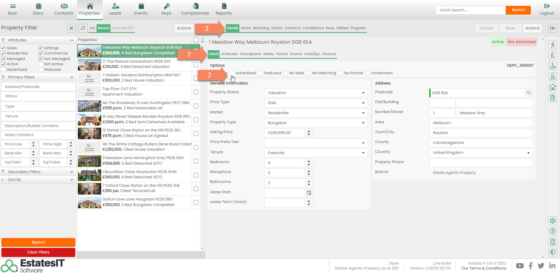 2. Click on Details/Detail section and then click on Advertised tick box.