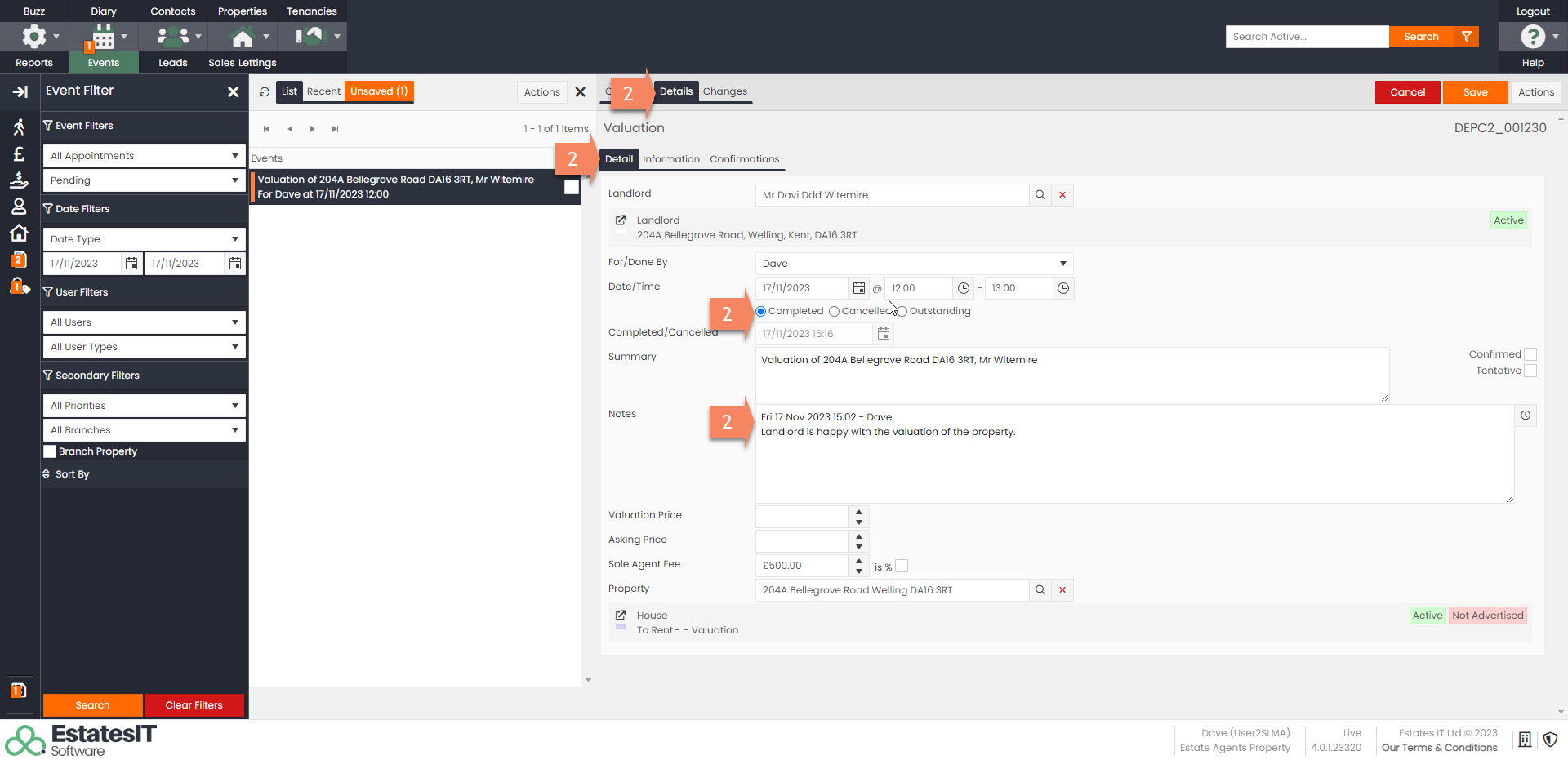 1. Quickest way to complete the valuation is to click through from the buzz section and your agenda or followup section.
