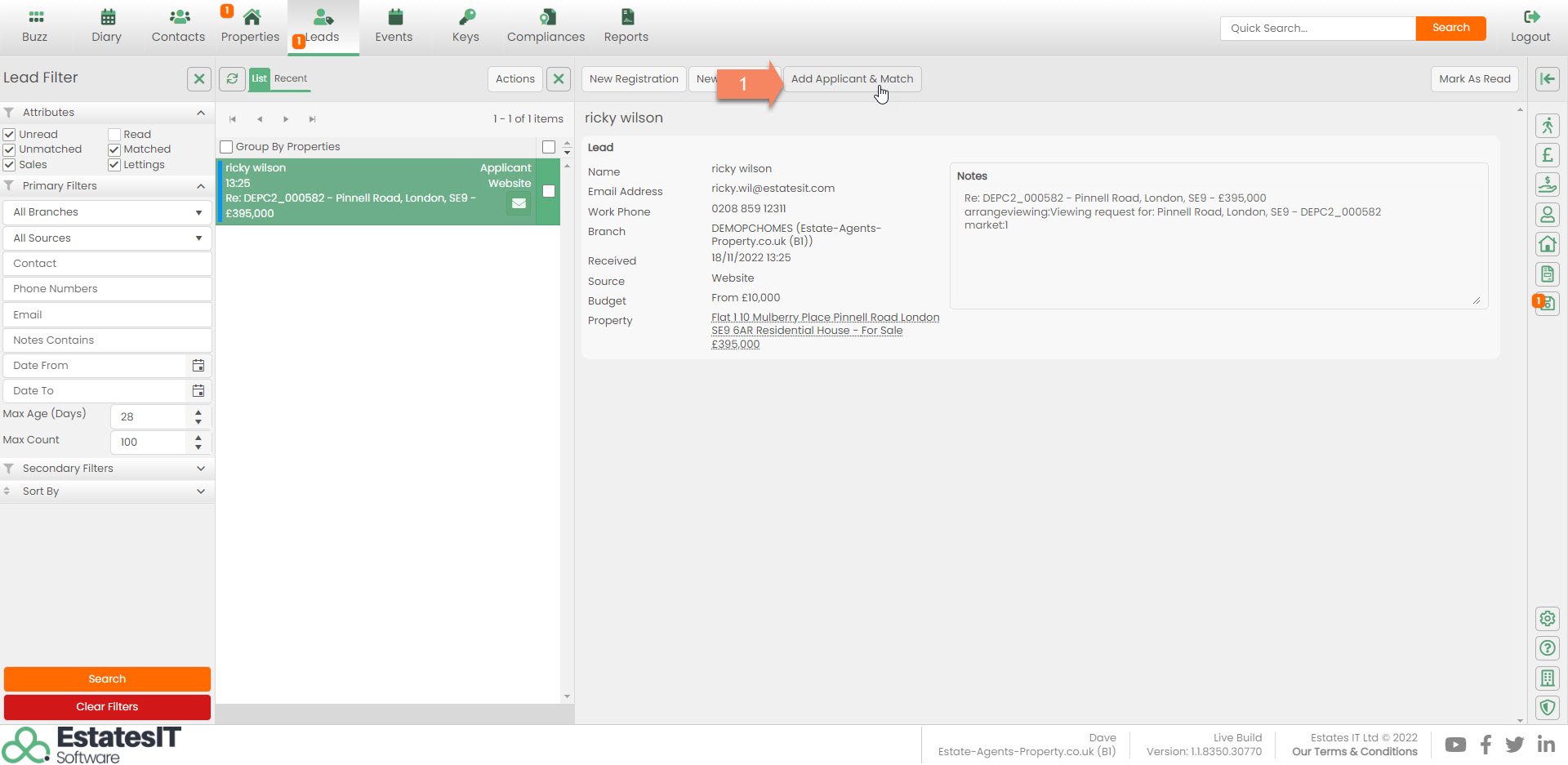 1. The second lead type we can deal with is a viewing lead. You can create a Registration or an Applicant... What is the difference between a Registration and an Applicant you may ask...
