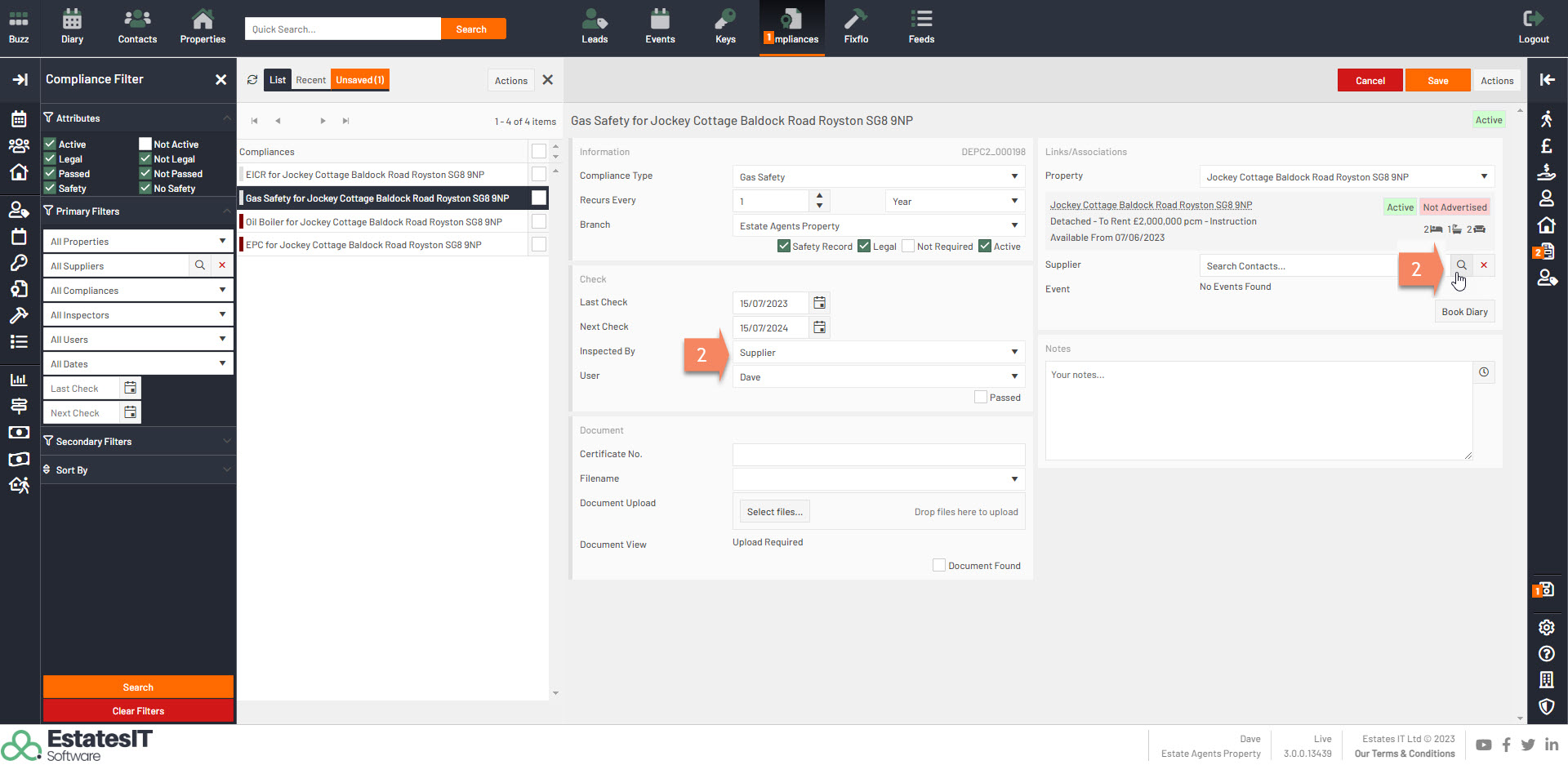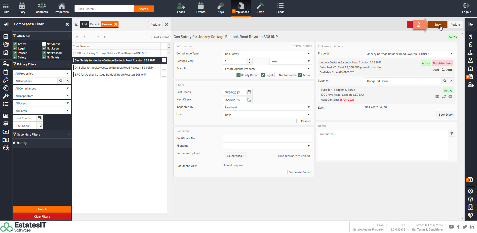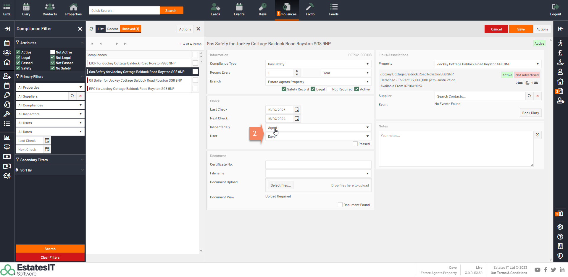 - Landlord - If the landlord is responsible for the compliance and you want to record this select them from the dropdown.