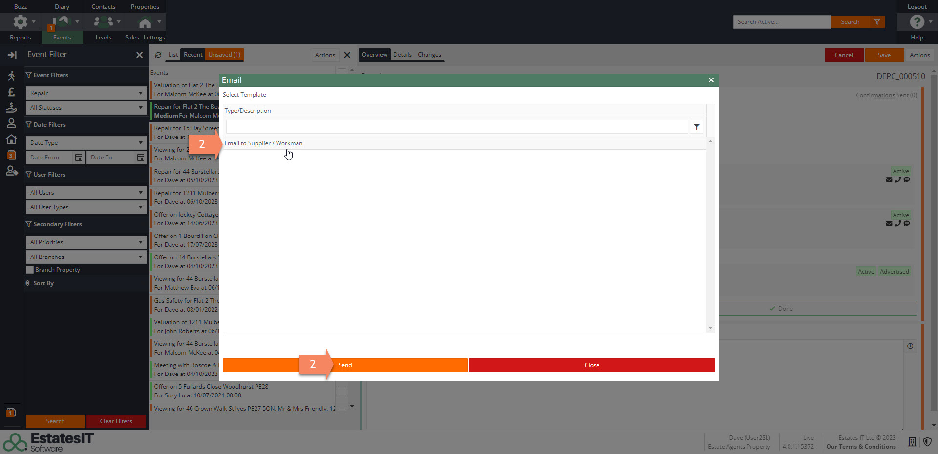 2. Select which email template to use. The one highlighted is the system one. Then click on Send.