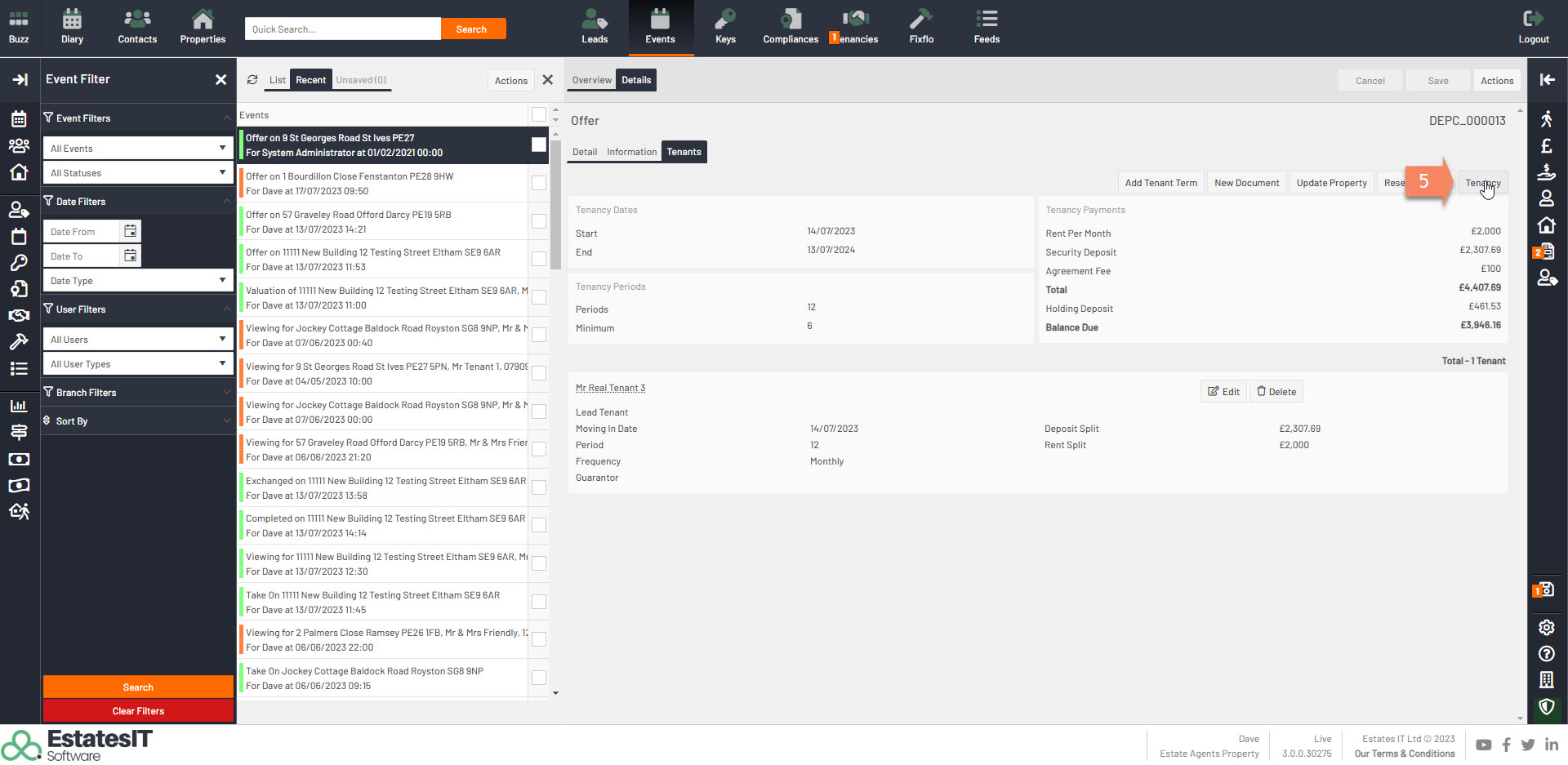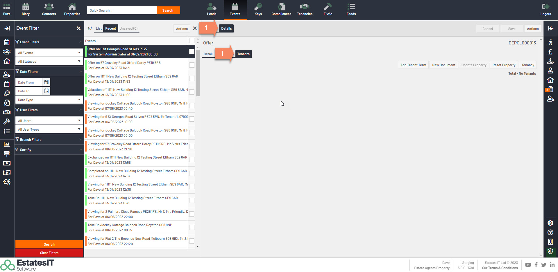 1. To setup a tenancy from the offer click on Details then Tenants.