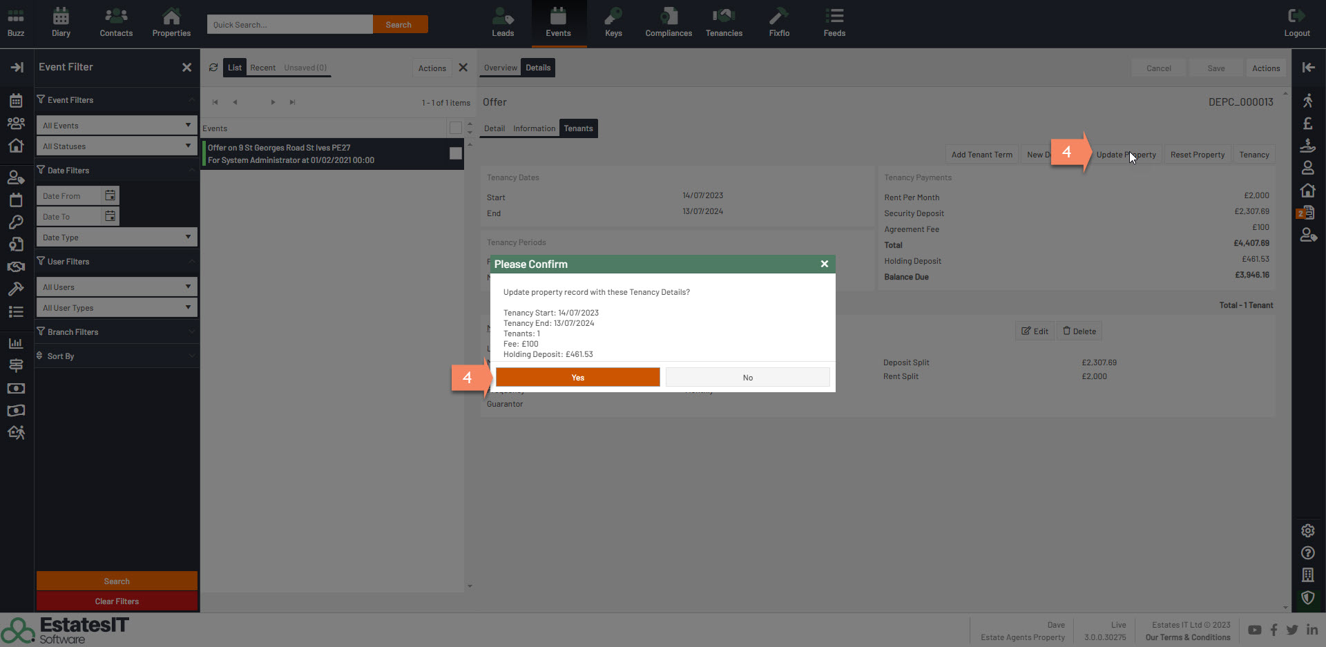 4. To copy all the Term information across to the property click on the Update Property button. You will then see a box that confirms the updating of the property record click on Yes.