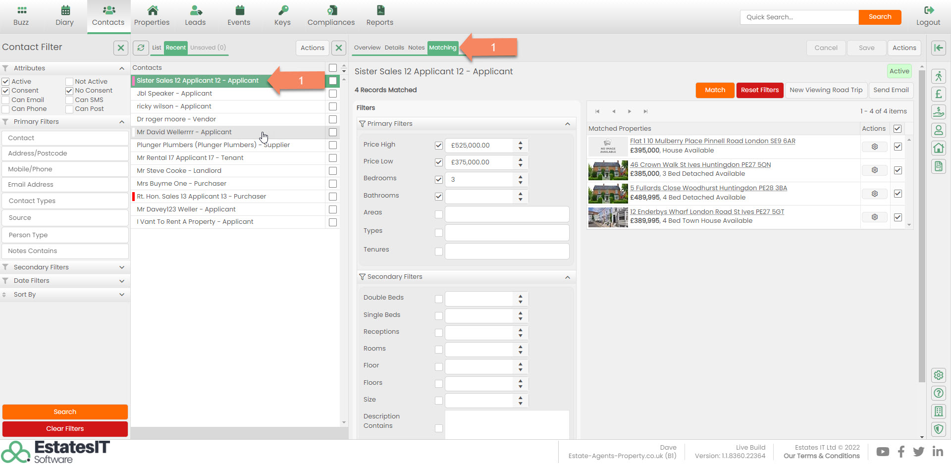 1.Select your applicant from the list. Then click on the Matching tab.