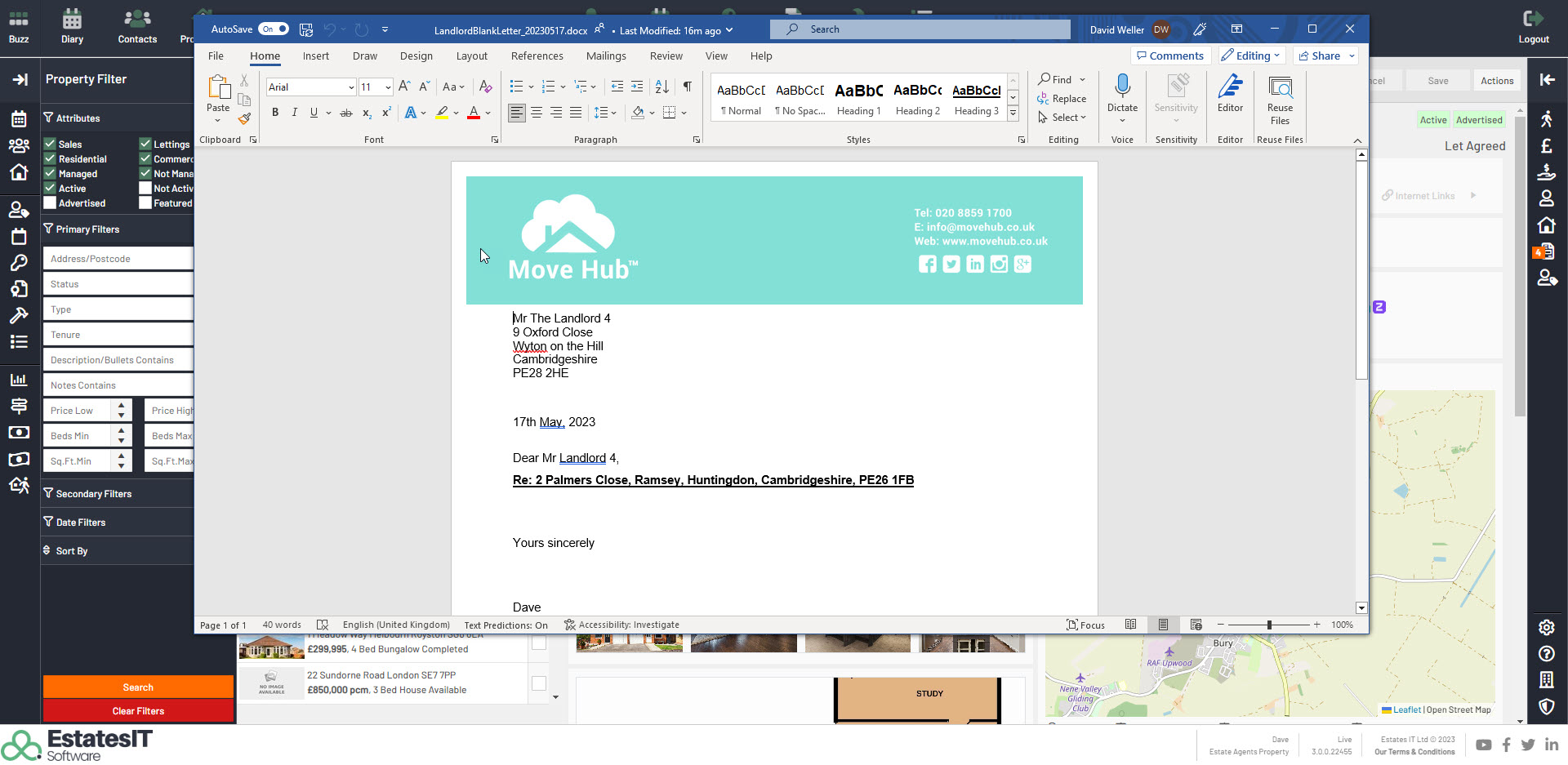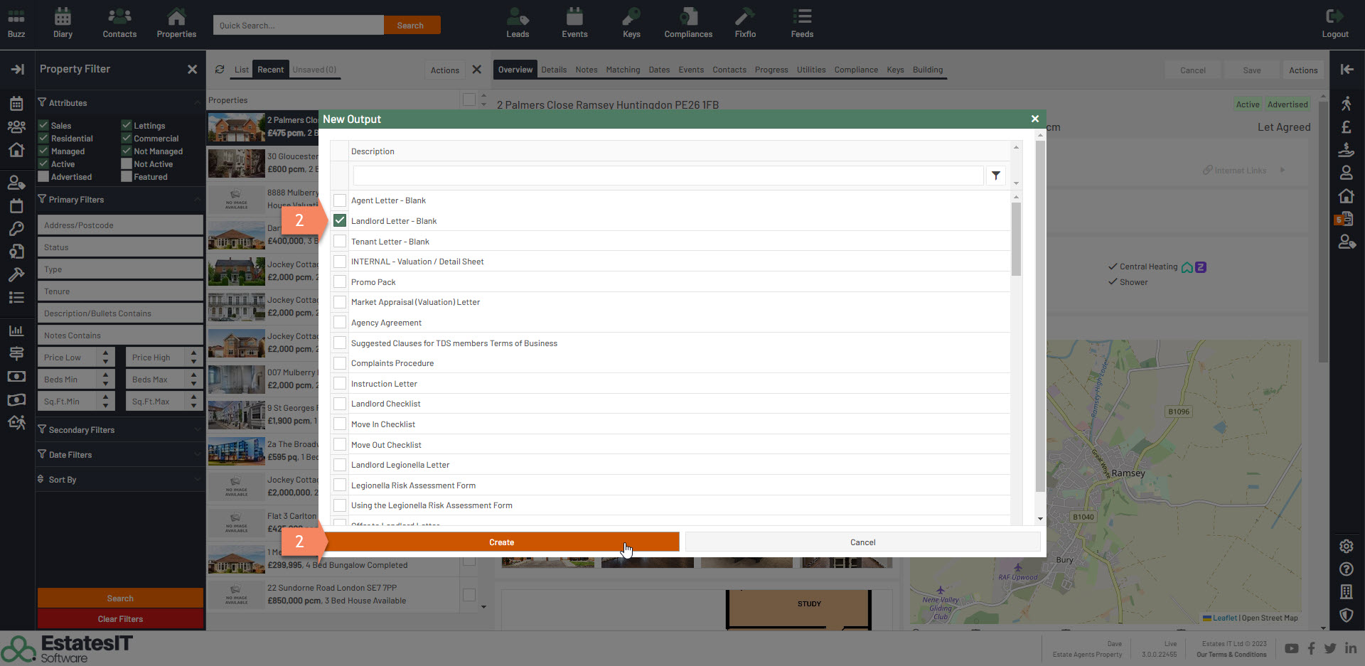 2.Select the letter you want to create. For the example below I have selected Landlord Letter - Blank then click on Create.