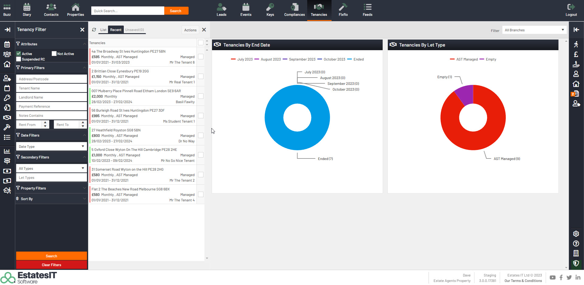 1. The List is a view of the filtered data on the left hand side. Or if no filtered has been applied then 100 Tenancies will appear and you will see the message "Too many records found. Please refine your search criteria". You will then need to apply a filter from the Left hand side.